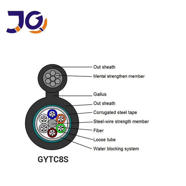 GYTC8S هو كابل ألياف ضوئية هوائي ذاتي الدعم مصمم للاستخدام الخارجي. يدعم من 1 إلى 144 ليفًا بهيكل أنبوب فضفاض مجدول. يتكون الكابل من سلك رسول، وغلاف خارجي من البولي إيثيلين، وأنابيب فضفاضة مملوءة بالألياف والهلام، ودرع شريط فولاذي مموج لمقاومة السحق والصدمات. يعزز عضو قوة سلك فولاذي مركزي الأداء الشد، وتحيط به مواد مانعة لتسرب المياه. مثالي للتركيبات الهوائية، GYTC8S مناسب لشبكات الاتصالات لمسافات طويلة وشبكات اتصالات LAN.