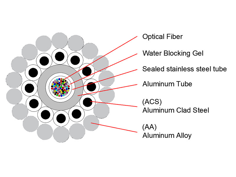 تصاميم نموذجية OPGW من أنابيب الفولاذ المقاوم للصدأ مغطاة بالدرجة المركزية